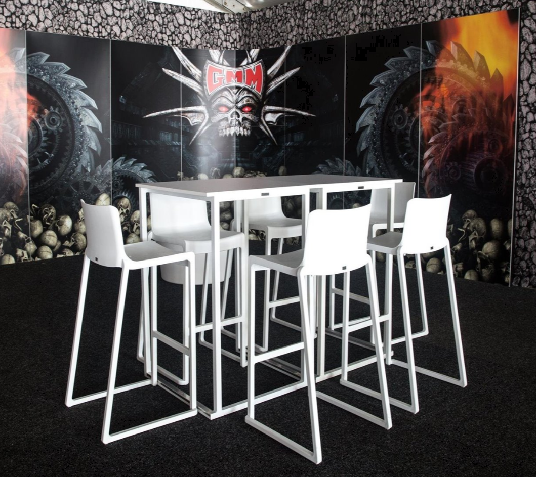 chaise haute Kasar au design sobre avec un confort optimal. Elle sera parfaite pour tous vos discours, présentations de produits, séminaires, conventions ou pour bien d'autres événements !