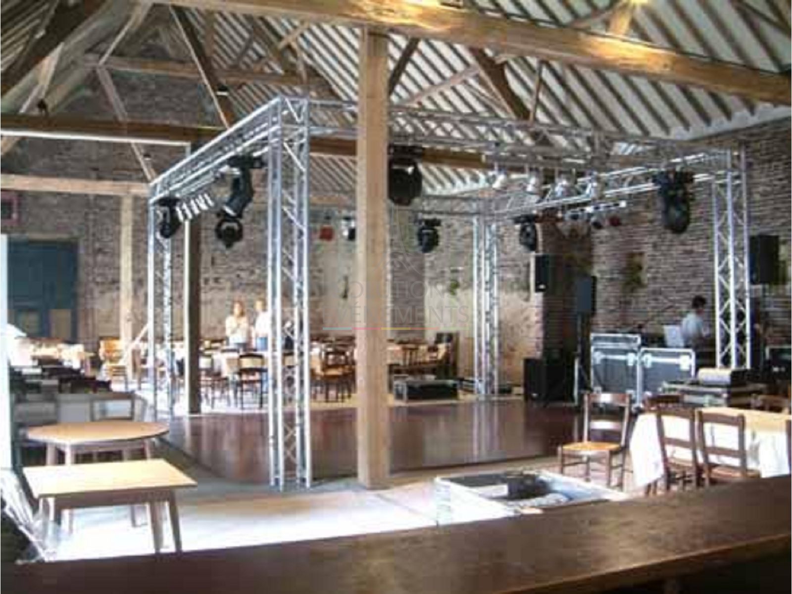 Cette structure cubique est une solution idéale pour suspendre des écrans, des bannières ou des jeux de lumière, tout en apportant une touche architecturale forte à votre événement.